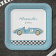 Blue race car birthday invitation paper plate