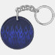 Blue Racing Flames on Carbon Fibre Print Keychain