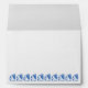 A custom envelope with your return address on the back in art deco letters and a border of blue sailboats sailing across the bottom of the envelope.