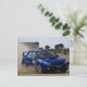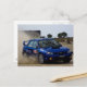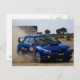 Blue rally car postcard