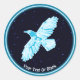 A simple, glowing, blue-and-white line image of a Raven (Corvus corax) on a starry background image. Add your own text.