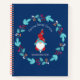 Blue Recipe Cookbook Holiday Gnome Floral Wreath Notebook