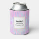 Birthday or other event can cooler with an abstract background pattern. Pink purple and blue watercolors make up this artistic design which features vertical rectangle shapes on a soft mottled background. A square layered over top with a faux gold foil border, your personalized text inside.