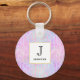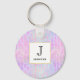 Cute key chain with an abstract background pattern. Pink purple and blue watercolors make up this artistic design which features vertical rectangle shapes on a soft mottled background. A square layered over top with a faux gold foil border, your personalized text inside.