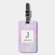 A luggage tag with an abstract background pattern. Pink purple and blue watercolors make up this artistic design which features vertical rectangle shapes on a soft mottled background. A square layered over top with a faux gold foil border, your personalized text inside.