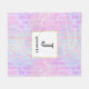 Blanket with an abstract background pattern. Pink purple and blue watercolors make up this artistic design which features vertical rectangle shapes on a soft mottled background. A square layered over top with a faux gold foil border, your personalized text inside.