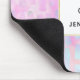 A mouse pad with an abstract background pattern. Pink purple and blue watercolors make up this artistic design which features vertical rectangle shapes on a soft mottled background. A square layered over top with a faux gold foil border, your personalized text inside.