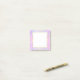 Sticky notes with an abstract background pattern. Pink purple and blue watercolors make up this artistic design which features vertical rectangle shapes on a soft mottled background. A square layered over top with a faux gold foil border, for you to write inside.