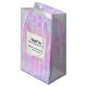 Thank you gift bag with an abstract background pattern. Pink purple and blue watercolors make up this artistic design which features vertical rectangle shapes on a soft mottled background. A square layered over top with a faux gold foil border, your personalized text inside.
