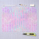 Tissue paper with an abstract background pattern. Pink purple and blue watercolors make up this artistic design which features vertical rectangle shapes on a soft mottled background.