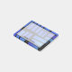 A geometric pattern with varying sizes of rectangle shaped tiles in pretty shades of blue and purple on a black background. Personalize with a name in a transparent box with a black border.