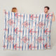 Blue Red Anchors Floral Stripes Beach Fleece Blanket