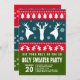 Blue Red and Green Reindeer Ugly Sweater Party Invitation