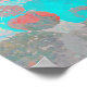 Blue red art of romantic floral / flower pattern poster