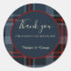 This wedding thank you sticker comes in different sizes, shapes and papers. It is customizable with your Intros, names and or monograms. It shows a harmonious blend of a navy blue red black scottish pattern and it has fitting light blue tones and white typography. The minimal round navy blue overlay with a burgundy border is for your customization. Hobinishop