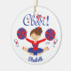 Blue Red Cheer Brunette Cheerleader Personalized Ceramic Ornament