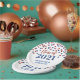 Customizable graduation party class of 2021 plates in white with glamourous red and blue confetti pattern. and elegant hand lettered style text.