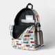 A cute backpack design featuring illustrations of blue and red vintage retro style racing cars and chequered flags. A perfect designs for anyone who loves fast classic racing cars, automobiles, sports, vehicles, race tracks etc. An ideal fast racing car theme for birthdays, bedroom décor, gifts etc.