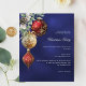Invite your team to celebrate the holiday season with this stylish and modern Christmas party invitation. Featuring a winter blue, uneven coloured background, the design is beautifully decorated with festive red and gold baubles, greenery, and a pine cone for a classic touch. Personalize it with your company’s event details to create a professional and sophisticated invitation, perfect for your corporate holiday gathering.