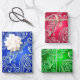 Blue Red & Green Celestial Swirls Pattern Wrapping Paper Sheet