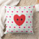 Cute light blue and magenta red heart pattern on white Throw Pillow. A big red happy heart is on the front side. The red heart image can be customized.