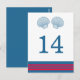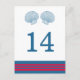 Elegant and classic Nautical Sea Shells Wedding Table Number Postcard with a pair of simple seashells and an array of stripes in dark navy blue and red. This nautical beach themed table card can be easily customized with your wedding details. For more customization options, click on the Customize It button.