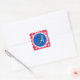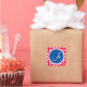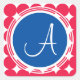 Red dots in close quarters create a secondary pattern of white stars. A large blue circle is surrounded by white lines, while a single white initial graces the centre.