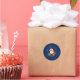 Vintage classic retro red and blue from Santa round stickers with Merry Christmas greetings in stylish script. Personalize your name for the perfect gift complement.
