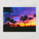 Blue Red Sunset Exotic Hawaiian Beach Palm Trees Postcard