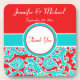 This modern and trendy turquoise blue, red, and white floral damask coaster set would make an ideal gift for your wedding party, or break up the set into singles or doubles, pop them in a nice organza bag, tie the bag with ribbon, add a favour tag, and you have some really nice wedding favours for you wedding guests. Customize the text however you want! Email niteowlstudio@gmail.com if you require any assistance.