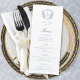 Blue Regency Floral Crest Monogram Wedding Menu