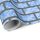 This nerdy wrapping paper design features a brick-like pattern with a look reminiscent of that of retro 8-bit computer games. It features different shades of blue.