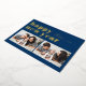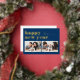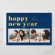 Happy New Year! Send your holiday greetings to family and friends with this customizable photo New Year card. It features retro bold typography on a navy blue background. Personalize by adding your details. This gold foil New Year card is available on other cardstock. Matching items are available.