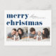 Blue Retro Typography Merry Christmas Two Photo Holiday Postcard