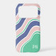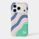 A fun and modern color palette of turquoise, blue, white and pink in a bold wavy striped pattern for any model Samsung Galaxy or Apple iPhone case. There is a half-tone overlay to make the design look more retro style for a subtle layer of interest and, well, it just looks groovy! Customize the case with your initials or short nickname in the chosen modern font, or choose a new font in the design editor. You can leave this personalization space blank if you prefer a modern minimalist aesthetic. A preppy, trendy and fashion-forward color blocked design! Check out the other color palettes available for this design :)
