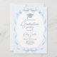 Celebrate her achievement with this "Blue Ribbon Coquette" graduation invitation. Featuring an elegant oval frame made of flowing watercolor ribbons and charming bows. This sophisticated dusty blue design with a classic grad cap is perfect for a Class of 2026 party. Ideal for graduates seeking a timeless, feminine, and high-end aesthetic for their high school or college celebration.