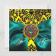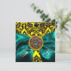 Elegant gold jewel with swirls,,classy,unique Art Nouveau damask with a vibrant 3D aqua blue gem stones, easily customizable with your text and initials as a wedding ceremony, nuptial announcement ,sweet 16 ,place card ,save-the-date ,thank you ,baby showers,bridal showers,,quinceanera birthday parties,Bat Mitzvah,romantic engagement showers, christmas,,holiday ,office ,family reunions ,new year's day eve celebrations,anniversaries,gatherings,school graduations,concert,recital or just about any event you wish!