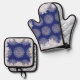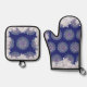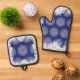 Blue rosace & snowflake oven mitt & pot holder set