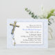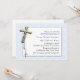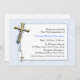 Religious photo invitation with gold cross entwined with blue rosary beads with subtle blue plaid border. Displayed as a First Communion invitation, but suitable for baptism, christening or confirmation. Created with original artwork©delightful-doodles.com