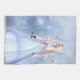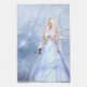 This design features a beautiful blue dressed angel on a soft blue clouds and stars themed backdrop she is holding a beautiful blue rose.