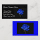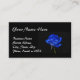 A business card with a photo of a gorgeous deep blue rose against a pitch-black sky.