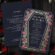 Make a bold statement of eternal love. This gothic wedding invitation features ‘Till Death Do Us Part’ in a coffin-shaped frame, adorned with thorns, roses, real foil accents against a deep blue background. Perfect for a hauntingly romantic celebration! Personalize the text, font, and background colour to suit your design preferences. Matching Items in our shop for a complete party theme.