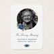 Personalized blue and gold floral memory cards/funeral prayer cards featuring a gold photo frame adorned with blue roses and greenery.
