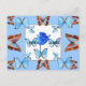 Blue Rose with blue and multicolor butterflies on a postcard. Butterflies are just Beautiful. These butterflies and blue rose would luv 2 travel any where at anytime, so send these butterflies 2 brighten someones day. God Bless You!