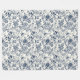 A classic, elegant, vintage navy blue rose vine toile pattern on a crisp white background.