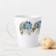 A free-spirited band of contemporary watercolor blue iris, blue roses and foliage this modern floral print latte mug.