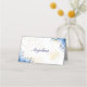 This elegant and floral wedding place card features blue watercolour roses and leaves on a blue watercolour background are perfect for a floral themed wedding.