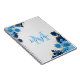 This chic and stylish notebook features a beautiful soft grey background with dark and medium shades of blue roses in opposite corners. There are also gold sparkling glitter accents amongst the flowers. You personalize it with your name and initial with the easy to use template provided.