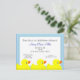This blue baby shower invitation is both fun & Friendly. It's parade of bright yellow rubber ducky friends makes it the perfect baby shower invitation.