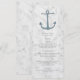 Perfect for a nautical themed wedding is this Rustic Anchor Wedding Menu Card with a blue boat anchor on a light grey marble look background. This classic and simple menu card is easy to customize with your wedding details. Find more personalization options by clicking Customize.